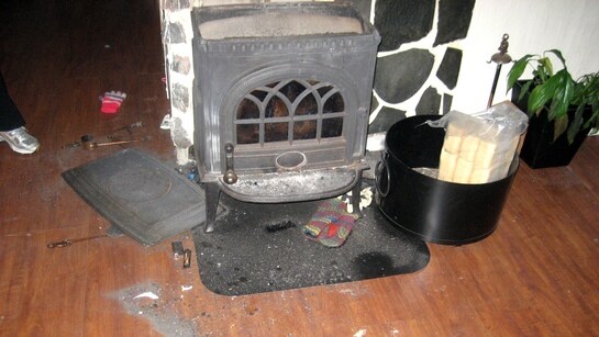 Brenselsbrikettene eksploderte i en vanlig vedovn. Tung ovnsplate og glør ble slengt ut i rommet. Huseieren er glad at liv ikke gikk tapt.