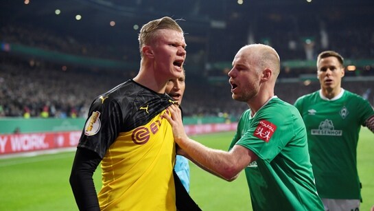 Erling Braut Haaland brukte 21 minutter på å score i cupkampen mot Werder Bremen. Men i sluttminuttene ble det virkelig temperatur på banen.