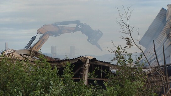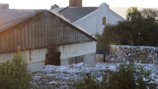 Brannen i papirlageret til Peterson Packaging er ennå ikke slukket, men femti meter unna er produksjonen i gang som normalt.