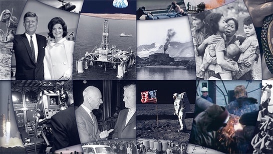 60-tallet hadde øyeblikk som har skrevet seg inn i verdenshistorien. Neil Armstrong var det første menneske som satte sine føtter på månen. Noen år tidligere blir president John F. Kennedy skutt og drept i en kortesje i Dallas, og Vietnamkrigen herjer. I Norge må regjeringen Gerhardsen gå etter en tragisk gruveulykke på Svalbard, og kronprinsen gifter seg med en kvinne uten blått blod i årene.