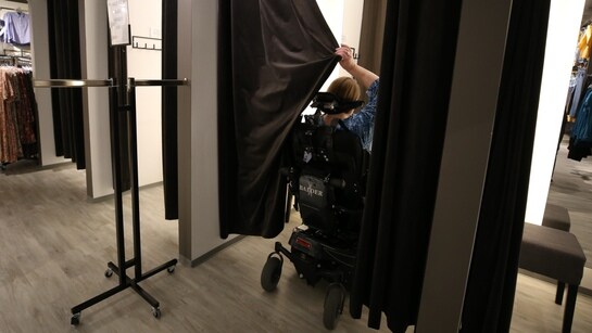 Til tross for nasjonale lover, tar fåtallet av klesbutikkene nok hensyn til rullestolbrukere. – Trenger tøffere regulering, mener Norges Handikapforbund.