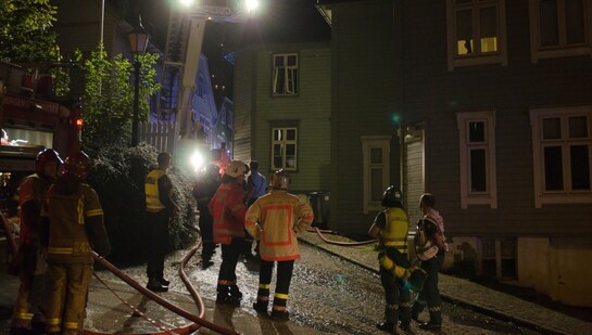 Brannvesenet måtte redda to jenter ned frå taket på det brennande huset.