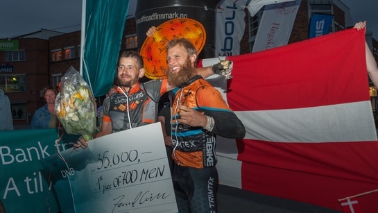 Danskene Erik Skovgaard Knudsen og Esben Hauerbach Kronborg syklet i mål som vinnere av Offroad Finnmark 700 til rekordtid.