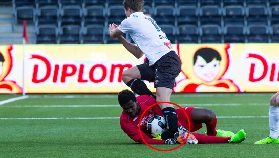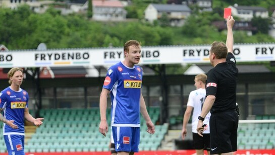 FOSSHAUGANE (NRK): Sandefjord-spelar Christer Hansen laga straffe og vart utvist for Sandefjord. – Eg var ikkje nær han, seier Hansen. No vil Sandefjord levera protest på utvisinga.