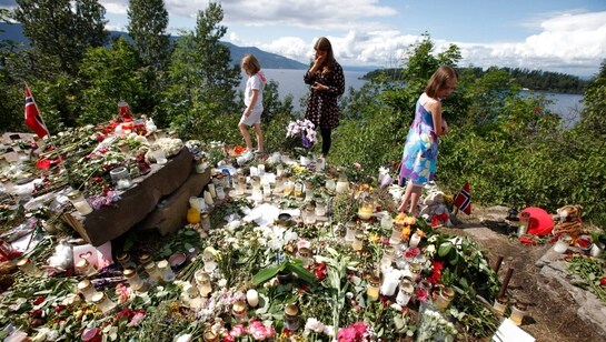 Blomstene ved Utøya blir liggende til etter fredagens minnestund på Sundvollen.