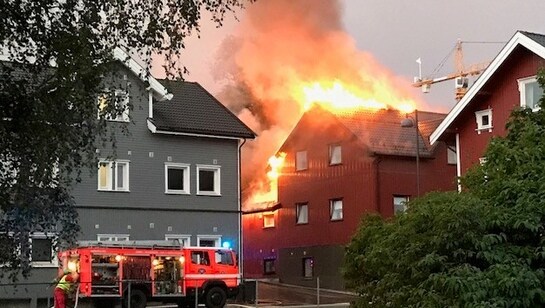 Truls Herstad er en av tolv personer som er evakuert etter at det tok fyr i en bygård i Mysen i natt. – Det var ikke morsomt å våkne av sterk røyklukt.
