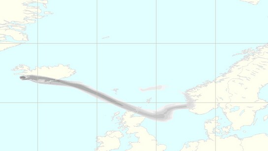 Svovelskya frå Island trefte Noreg rundt klokka fire i natt.