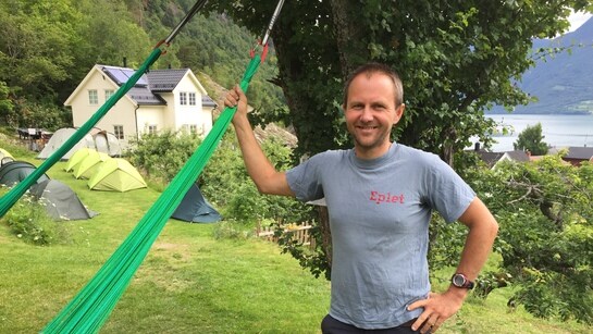 SOLVORN (NRK): Trond Henrik Eplet i Solvorn er nøgd med dei turistane han har, og ønskjer ikkje store busslastar til bygda si.