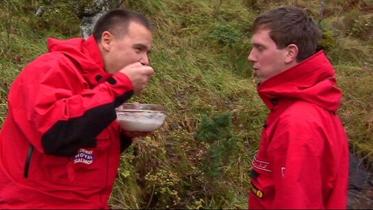 Honnikorn med fløte og matolje er fast frokost for polfarerne Ottar Haldorsen og Jacob Palmer Meland på sin vei mot polpunktet.