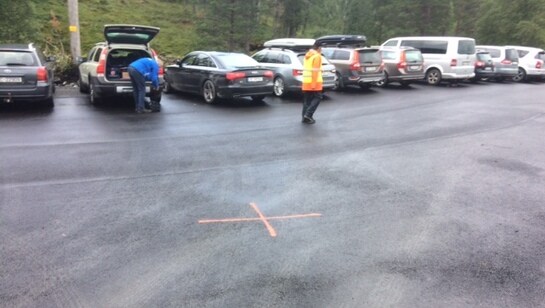 Ein av parkeringsvaktene på Landsskyttarstemnet blei påkøyrd av ein bil.