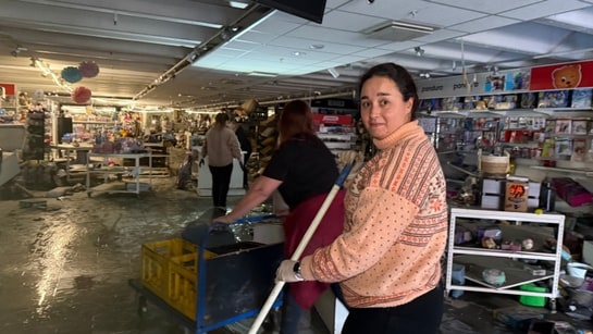 «Amy» har etterlatt seg store ødeleggelser. I en butikk på Revetal prøver ansatte å redde varer for millioner.