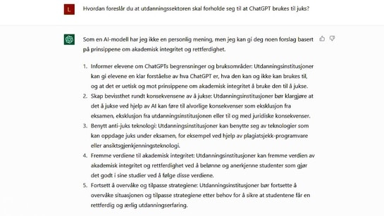 Alt tyder på at kunstig intelligens (KI) og samtaleroboter er kommet for å bli. Kunnskapsdepartementet vurderer ny nasjonal veileder for behandling av fusk.