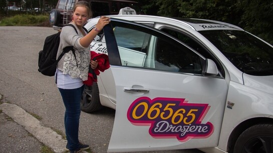 Hannah (10) er et av stadig flere barn som bor på to steder. Annenhver uke må hun ta drosje til skolen. Stadig flere barn i samme situasjon gjør at taxiutgiftene skyter i været.