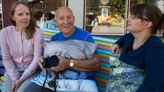 Et blinkskudd av en reinsdyrflokk i frostrøyk har havna på puter i de tusen hjem. Fotografen er en 82 år gammel friluftsentusiast fra Vågå.