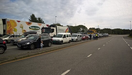 Tre ferjeavganger på rad med farlig last skaper lange køer på kaien i Leirvåg. – Utrolig dårlig organisert, sier bilist.