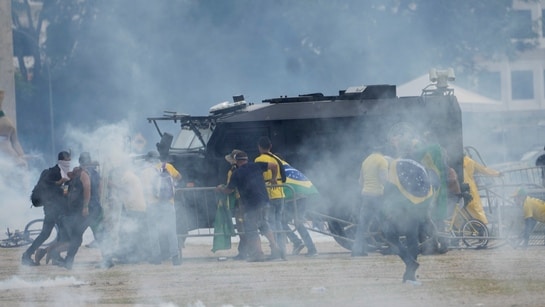 Brasils tidligere president Jair Bolsonaro sier angrepene på kongressbygningen, presidentpalasset og h øyesterett er udemokratiske. Alle bygningene som ble stormet er nå under statlig kontroll igjen.