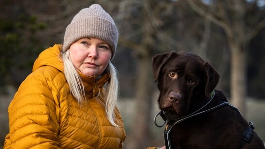 Hvis blodsukkeret til Anne-Line blir for lavt, gir diabeteshunden Anton tydelig beskjed.