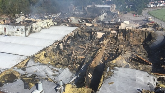 Temperaturen i restene av lagerbygningen som brant ned på Narverød i Tønsberg forrige, er fortsatt for høy til at politiet kan gå inn og etterforske årsaken til brannen.