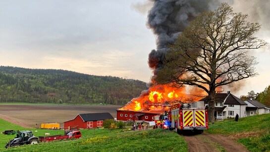 Flere innesperrede griser ble reddet ut av et brennende fjøs tirsdag. Brannvesenet fryktet lenge brannen ville spre seg til bolighus.