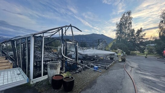 Eit hagesenter stod i full fyr i Gloppen i Nordfjord. Brannvesenet frykta at brannen skulle spreia seg til fleire nabohus, men klarte å slå ned flammane.