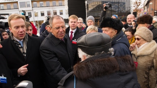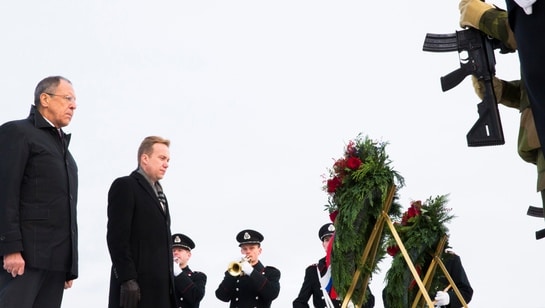Utenriksminister Sergey Lavrov og statsminister Erna Solberg talte under frigjøringsjubileet.