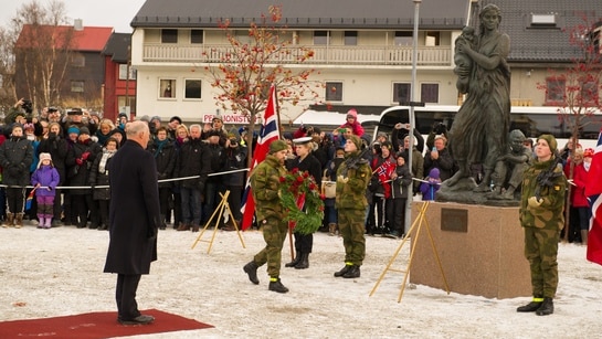 Kongen hyllet russerne for frigjøringen av Øst-Finnmark i 1944. Statsminister Erna Solberg mener russerne må endre holdningene sine.