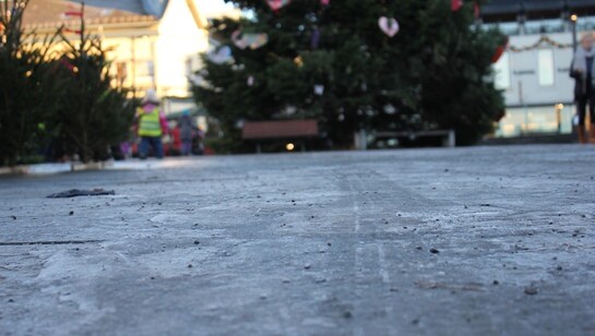 Folk som går over torget i Tønsberg advares mot å skli på glatta. Systemet for oppvarming fungerer fortsatt ikke.