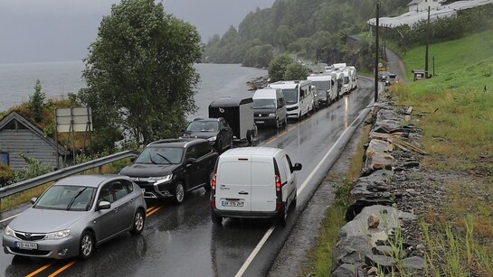 Riksveg 13 mellom Tyssedal og Stana vart stengt etter at det gjekk ras for andre gong på under ei veke. Det har ført til timevis med venting og køane har vakse på.