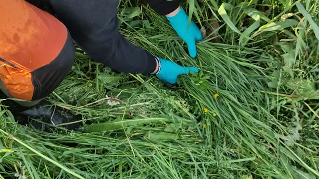 Foto: Håkon SolbergAlund er en av flere frivillige fra Snertingdal jeger- og fiskerforening som søker gjennom gressmarkene i Gjøvik-regionen før bøndene kjører sine slåmaskiner.