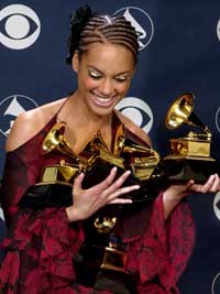 Med en drivende dyktighet på pianoet, gode, egenproduserte låter og masse ungpikesjarm har Alicia Keys tatt et sjumilssteg oppover hitlistene verden over. Det er egentlig ganske drøyt, alt hun har fått til på kort tid. På grammy-utdelingen nå på onsdag rasket hun med seg ikke mindre enn fem priser, blant annet for beste r’n’b-album, beste kvinnelige r’n’b-vokalfremføring og beste r’n’b-låt. Det er bare å slikke støv, denne damen har noe helt eget ved seg. Hennes nydelige, smektende ballader og vakre stemme har allerede skaffet henne en solid stjerne i r’n’b-himmelen.