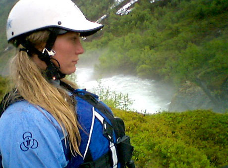 Mariann sjekker ut de ville stryka hun snart skal padle.