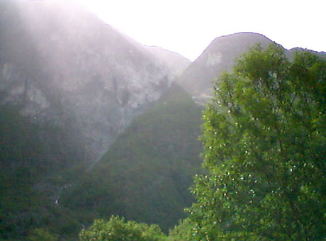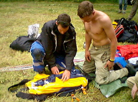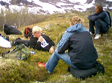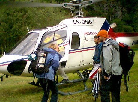 Litt duskregn, så skinner sola igjen. Helikopteret er her hvert øyeblikk. Her ser du hvor de hopper fra.
