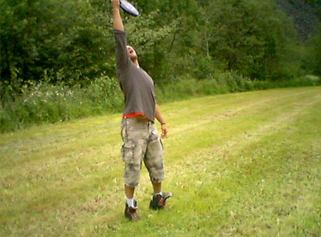 Noen slår ihjæl tid med litt frisbe imens man venter på at helikopteret skal komme.