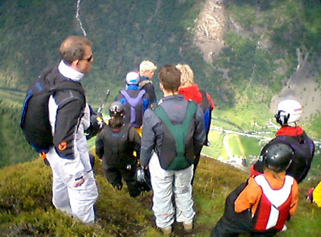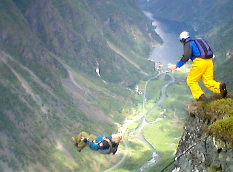 Idag er det base. Opp med helikopter til Nebbet her i Gudvangen. Ned i fallskjerm. Stay tuned.