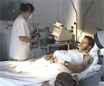 Gulliksen tar blodprøve fra armen. Kristopher vil ikke se på, sittende skjevt og svett i sengen med ansiktet bortvendt.