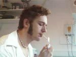 Første sigarett er av merket Prince Mild menthol. Den inneholder 10 mg. tjære og 0,9 mg. nikotin. Røyken lukter av tobakk og mentholatum, og Kristopher har liten tro på at den vil gi ruseffekt.