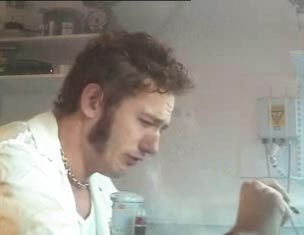 Virkningen av røyken kommer umiddelbart; Kristopher hoster så tårene triller. Han spytter ut slim mellom trekkene.