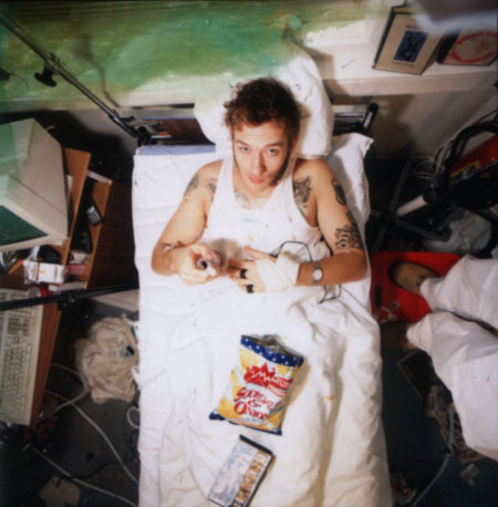 Kristopher tilbringer mesteparten av tiden i senga. Her kan du se gjennom en hel liten bildeutstilling over nettopp dette temaet.