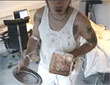 Kristopher eksperimenter mens han røyker på toalettet. Konseptene kaller han bæsj mot brann og smegma-testing.