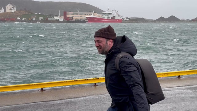 Foto: Per-Magne Steen / NRKSom erfaren sjømann blir han heldigvis ikke båtsyk når bølgene slår, men han og mannskapet tar sine forholdsregler. Nå ligger de trygt til kai, hvor de blir liggende til været roer seg.