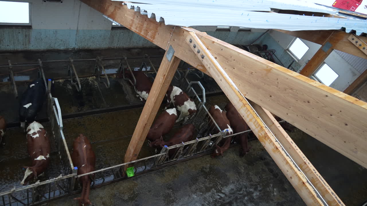 Ei voldsom vindkule traff fjøset til rundt 50 melkekyr og 50 ungdyr. Bonden ble oppmerksom på voldsom støy.