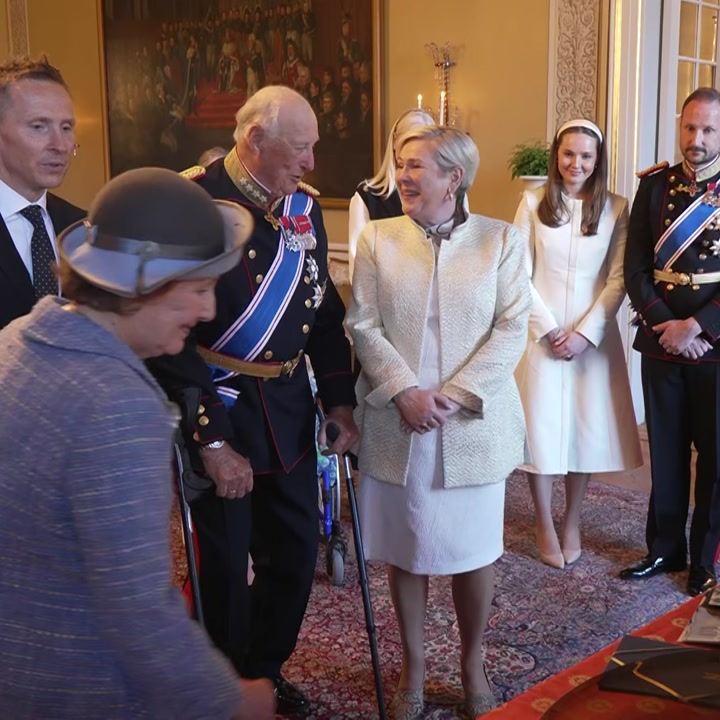 Det var dermed et fulltallig norsk kongehus som møtte det islandske presidentparet i dag.