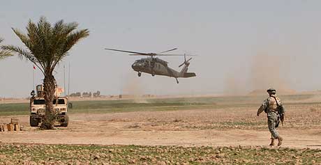 Amerikanske soldater sikrer en landsby utenfor Samarra i Irak 17. mars 2006. (Foto: AP/Scanpix) |
