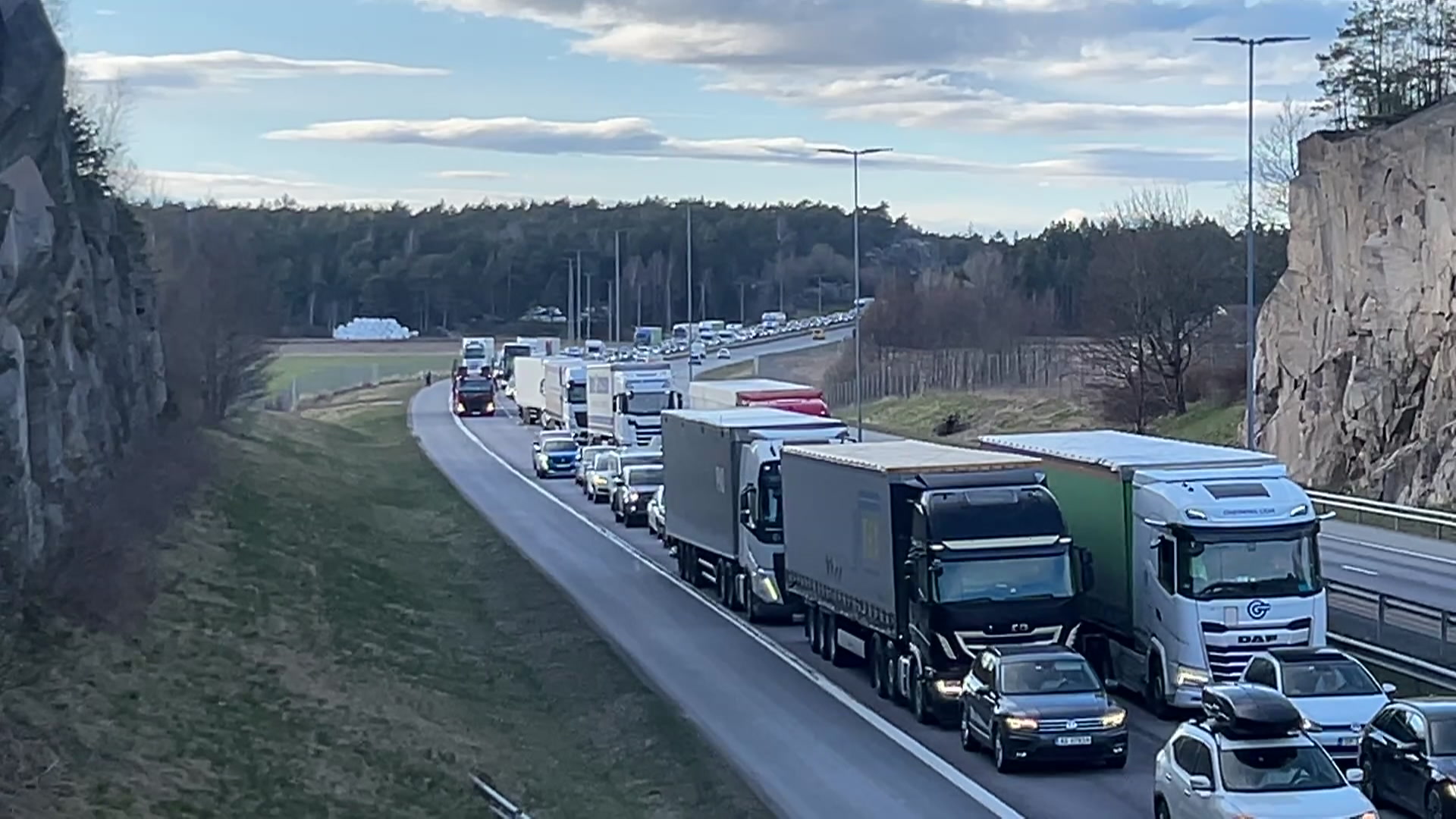 E6 kommer til å bli stengt lenge, og ulykken skapte lange køer i utfarten mot Sverige ved inngangen til den første helgen i Påsken.