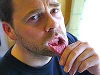 - Som man blant anna kan påfør sæ sjøl via overdreven bruk tå skummandes, såpeinnholdig tannkrem, forklarer en nyinformert og svært rolig Odin Jensenius.