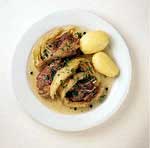 Kokes opp igjen neste dag og serveres med kokte poteter.