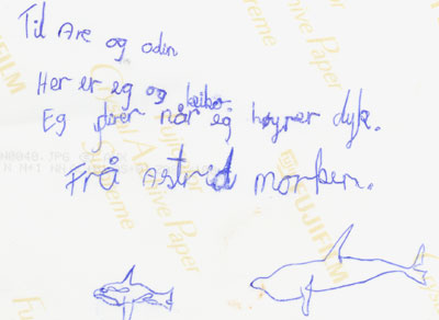 Astrid har møtt Keiko, og hva er vel mer naturlig enn å dele det med Are og Odin. Det er et nydelig bilde fra en jente som faktisk spiller munnspill for Keiko.