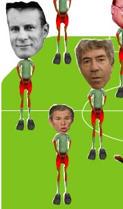 Arafat og Sharon ryker ut denne uka, men ikke permanent. De er faktisk bare leid ut til et tilsvarende patetisk fotballlag i Midtøsten for en klekkelig sum. Tony Blair får også på båten for å gi plass til tre spillere som har utmerket seg spesielt i det siste.
