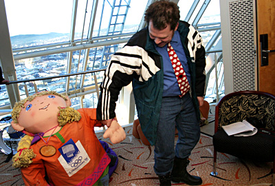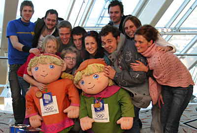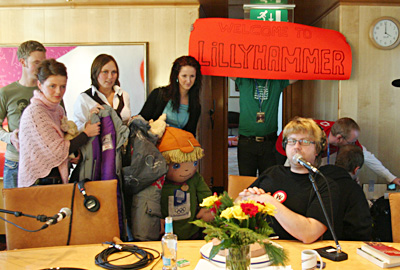 Lillyhammer!! Marieke og gjengen bragte med seg en del utstyr fra OL-byen [Foto: Kim Erlandsen, NRK] |