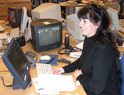UjourUtenriksstoff er en viktig del av innholdet i Dagsnytt-sendingene. Derfor er det alltid, med unntak på natterstid, en jourhavende utenriksansvarlig på vakt i Dagsnytt-redaksjonen som kalles for u-jour. Foruten å lage stoff til sendingene, er u-jour ansvarlig for at NRKs korrespondenter verden over leverer sitt materiale i tide. Publisert 30.01.2002 12:37. Oppdatert 22.02.2002 14:48. | U-jour Eva Christine Hyge planlegger utenriksstoffet i Dagsnytt. |